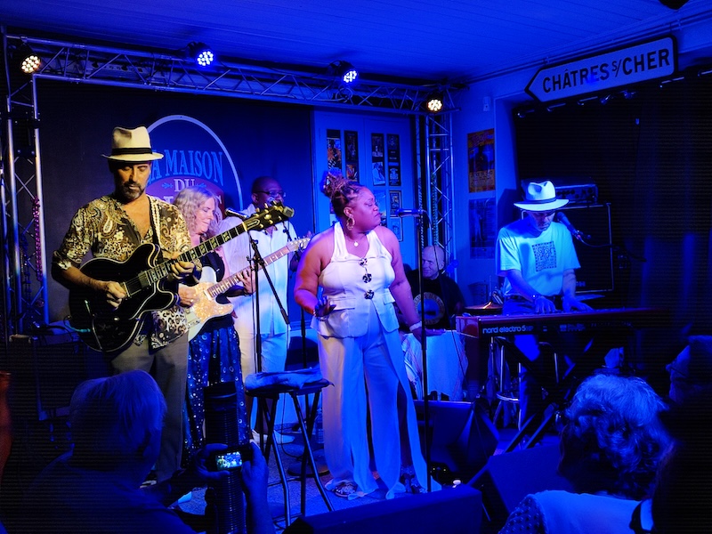 Carroline Shines à la Maison du Blues, avec Fred (à gauche) lors de son dernier concert le 10 août 2025. © : La Maison du Blues.