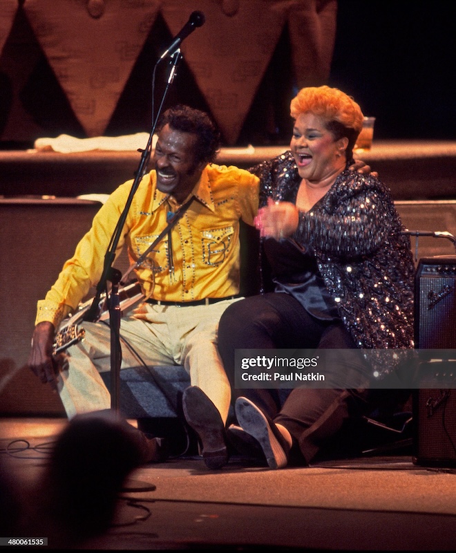 Tourné en 1986 pour marquer le soixantième anniversaire de Chuck Berry (né le 18 octobre 1926), le documentaire de 120 minutes réalisé par Taylor Hackford est largement basé sur deux concerts donnés par le rocker le 16 octobre de la même année, au Fox Theatre à Saint-Louis, sa ville natale. Bien entendu, pour l’occasion, un groupe de « stars » est mis sur pied et parmi les artistes qui l’accompagnent sur scène, on relève les noms de Keith Richards (guitare, chœurs), Johnnie Johnson (piano), Chuck Leavell (orgue), Bobby Keys (saxophone), Eric Clapton (chant, guitare), Robert Cray (chant, guitare) et Etta James (chant), pour citer celles et ceux qui sont le plus liés à l’objet de ce site. Bien entendu, il s’agit pour l’essentiel de rock ‘n’roll originel typé fifties dont Berry est un pionnier, mais sur Wee wee hours (avec Clapton au chant et à la guitare), il démontre toute sa maîtrise du blues. Rappelons d’ailleurs au passage que Berry a enregistré bon nombre des versions originales de ses plus grands succès avec les meilleurs bluesmen de l’âge d’or à Chicago, dont Hubert Sumlin, Lafayette Leake, Willie Dixon et Fred Below !