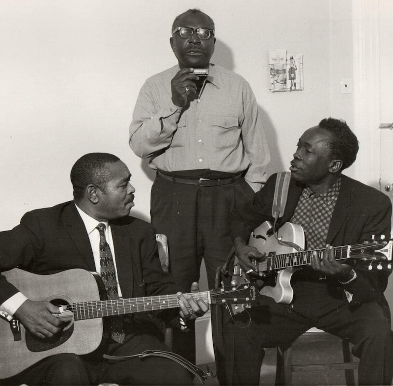 Brownie McGhee, Sonny Terry et John Lee Hooker à Manchester en 1962. © : Brian Smith / Bob Corritore.