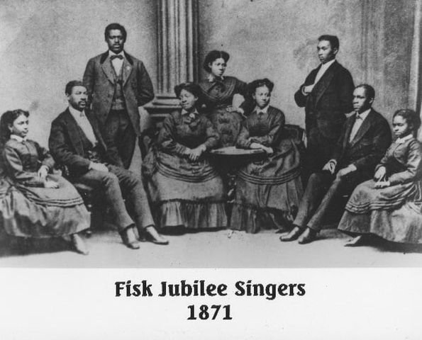 Si les premiers disques de jazz et de blues datent respectivement de 1917 et 1920, nous savons qu’il existe des enregistrements très antérieurs de negro spirituals, qui nous ramènent aux années 1890. À l’époque, on trouve déjà des groupes vocaux de spirituals, et parmi les plus célèbres, les Fisk Jubilee Singers tournent depuis 1871 dans tous les États-Unis, au point d’être invités à la Maison Blanche par le président Ulysses S. Grant en mars 1872 ! Logiquement, ces formations seront les premières à enregistrer quelque vingt ans plus tard de la musique afro-américaine, comme je l’évoque dans mon article du 30 mai 2024. Mais les moyens d’enregistrement restent encore à inventer. Ce sera fait avec Thomas Edison et son phonographe en 1877 puis Emil Berliner et son gramophone dix ans plus tard. En attendant, les pionniers des spirituals se produisent dans le cadre de spectacles itinérants comme les minstrel shows. Hélas, dans ce cadre, de pseudo-artistes (sic) blancs leur volent souvent la vedette pour se moquer des Afro-Américains en se grimant en Noirs, les blackface.