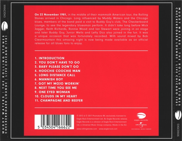Mais l’improbable concert aura donc bien lieu ce 22 novembre 1981. Rien ne l’annonçait, et sur la façade du club, seul le nom de Muddy Waters apparaissait. Il y aura toutefois des fuites et plusieurs milliers de personnes s’amassèrent à l’extérieur du Checkerboard. La police de Chicago avait bloqué East 43rd Street entre Vincennes Avenue et King Drive, mais comme le dira Thurman, « on ne laissait pas entrer les flics dans le club car les Stones avaient acheté pour chaque table un sachet de joints de cannabis ». On note dès lors avec amusement que la dernière chanson interprétée ce soir-là était une composition de Muddy Waters, Champagne and reefer (du champagne et un joint !)… Outre Muddy et son groupe, les quatre membres des Stones présents étaient Mick Jagger, Keith Richards, Ronnie Wood et Ian Stewart, auxquels s’ajoutaient en invités Buddy Guy, Junior Wells et Lefty Dizz. Des versions pirates circuleront après l’enregistrement, mais il faudra attendre 2012 pour une sortie officielle chez Eagle/Universal, en CD (11 titres) et DVD (15 titres), sous le titre « Live at the Checkerboard Lounge, Chicago 1981 ». Artistiquement, cela relève plutôt de la jam session débridée, mais l’album est aujourd’hui culte… Quant au Checkerboard Lounge, il déménagera sur South Harper Court en 2003, avant de fermer en 2015.