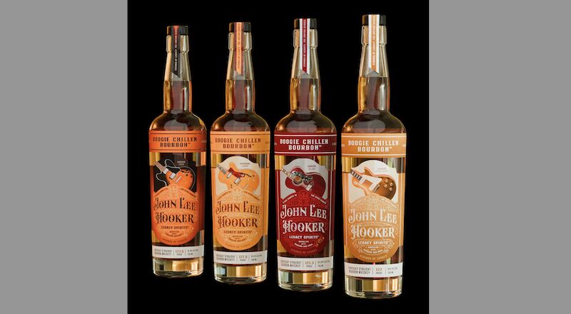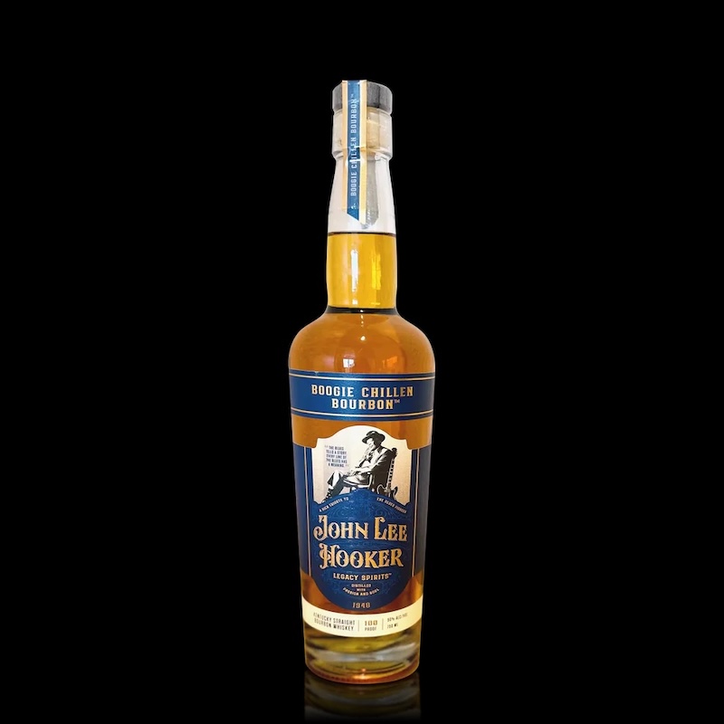 Histoire de pérenniser d’une façon originale l’héritage du bluesman, sa fille Zakiya Hooker et Glenn Thomas, le fils de Zakiya, ont fondé en 2023 John Lee Hooker Legacy Spirits, une marque de spiritueux et plus particulièrement de bourbon. La première référence s’appelait « Boogie Chillen’ 1948 », pour un whiskey distillé à la Bardstown Bourbon Company, bien entendu dans le Kentucky. Les descendants du bluesman vont aujourd’hui plus loin en lançant, en collaboration avec la marque de guitares Gibson, une série de quatre bouteilles prestigieuses, « Strings of Legacy: Kentucky Bourbon Collection », produites par Pursuits Spirits, une distillerie de Louisville, toujours dans le Kentucky. Les étiquettes des bouteilles sont illustrées de quatre modèles de guitares Gibson utilisées par Hooker : Gibson ES-335, Gibson Les Paul Goldtop, Gibson SJ-200 et Epiphone Zephyr. Il s’agit de bourbon vieilli huit ans dans un seul fût de chêne neuf, et ce sont dès lors des produits plutôt haut de gamme. Chaque bouteille se vend en effet 129,99 dollars, et la série complète coûte 479,99 dollars. Il va de soi que ces breuvages se consomment avec modération.