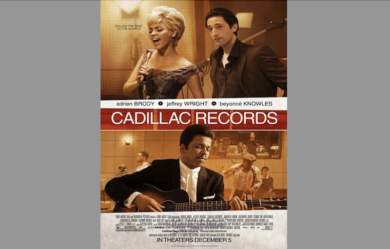 Le film Cadillac Records (bande-annonce) raconte en fait l’histoire de Leonard Chess et du label qui porte son nom à Chicago. Réalisé par Darnell Martin, qui est aussi l’autrice du scénario, il est sorti en salles le 5 décembre 2008, il y a tout juste dix-sept ans. L’accent est mis sur l’âge d’or du blues moderne dans les années 1950, mais aussi sur l’ouverture progressive de Chess vers d’autres styles dont soul, gospel, rock ‘n’ roll et jazz. Au casting, Leonard Chess est incarné par Adrien Brody (Le pianiste, King Kong, Minuit à Paris, The Brutalist…), pendant que Beyoncé Knowles joue le rôle d’Etta James. Ceci n’a rien d’étonnant, car outre sa carrière musicale, Beyoncé apparaît dans de nombreux films, et souvent dans les premiers rôles. Plusieurs grands bluesmen revivent sous les traits d’autres acteurs : Muddy Waters (Jeffrey Wright), Willie Dixon (Cedric the Entertainer), Little Walter (Columbus Short), Howlin’ Wolf (Eamonn Walker), Chuck Berry (Mos Def) et Jimmy Rogers (Kevin Mambo).