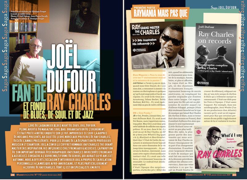 Depuis hier 11 décembre 2025, le numéro 119 de Blues Magazine est disponible dans les kiosques. La chanteuse-guitariste Samantha Fish apparaît en couverture et fait l’objet d’une interview en pages intérieures. À propos d’interviews, elles sont comme toujours nombreuses au sommaire : The Freaky Buds, One Rusty Band, Grant Haua & David Noël aka Feelgood Dave, Jessie Lee & The Alchemists, Lil’ Magic Sam et Mike Andersen. La première partie d’une saga est dédiée à Joël Dufour, qui vient de publier un livre fondamental, Ray Charles on Records – Discographie complète de Ray Charles. On retrouve aussi le deuxième volet du dossier consacré au label Atlantic. Bien entendu, l’ensemble se complète avec des comptes-rendus de concerts et festivals, des rubriques (« L’instant Blues Actu », « La lettre et l’esprit », « La batterie de Been’s », « L’harmonica de Jean-Marc », « La guitare de Cisco »…) et des chroniques de disques et de livres.