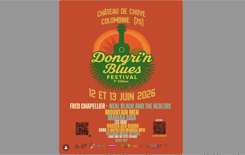 La troisième édition du Dongri’n Blues Festival se déroulera les 12 et 13 juin 2026 à Choye dans la Haute-Saône, au nord-ouest de Besançon. Il importe de s’arrêter sur cet événement plutôt atypique dans notre paysage, avec des groupes et artistes rares sur nos scènes. On doit l’initiative à l’association Benkadi Joie-Production, qui, pour reprendre les termes de son profil Facebook, « a pour objectif de favoriser l’échange de culture entre l’Afrique et l’Europe à travers des projets socio-culturels ». Tout est parti de la collaboration en 2012 entre la chanteuse-bassiste ivoirienne Joyce Tape et le chanteur-guitariste malien Boubacar Traoré, qui lancent le projet Dongri-Niman (dont le nom du festival est dérivé). En 2015, Tape sort « Niman, la musique va plus loin que les mots », un album auquel participe Traoré. Depuis, le festival se partage entre l’Afrique et la France, et sa programmation très intéressante s’inscrit dans ce souci d’échanges de musiques plurielles entre les deux continents.