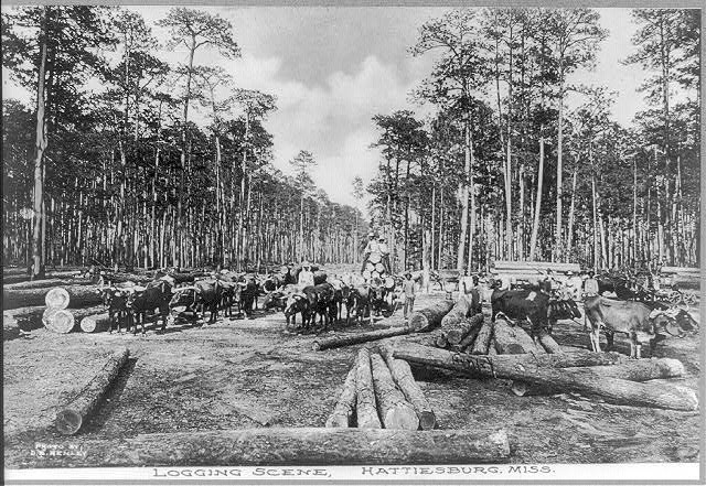 Le premier train passe par Hattiesburg en 1883, et l’arrivée du chemin de fer favorise le développement de l’industrie du bois, ce qui va se traduire par une déforestation marquée durant les années suivantes. La population de la ville, 400 habitants lors de son incorporation en 1884, est multipliée par quatre en moins de dix ans. Une croissance démographique toutefois un peu freinée en 1893 par un violent incendie qui incite les constructeurs à privilégier la brique plutôt que le bois… Mais l’exploitation forestière continue, Hattiesburg devient un nœud ferroviaire avec des lignes depuis et vers de nouvelles destinations dont Gulfport sur le golfe du Mexique et Jackson, la capitale de l’État. En 1910, la ville compte 4 200 habitants et près de 12 000 en 1920. Les années 1920 voient aussi la construction de routes qui viennent compléter le réseau ferré.