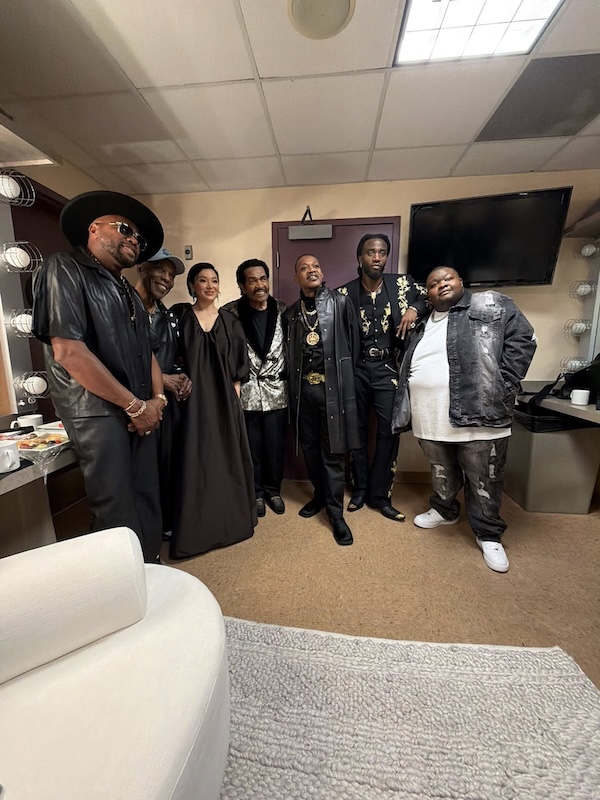 D-Nice, Buddy Guy, Serena Goransson, Bobby Rush, Eric Gales, Shaboozy et Christone « Kingfish » Ingram lors de la cérémonie des Oscars le 15 mars 2026. © : Profil Facebook de Buddy Guy.